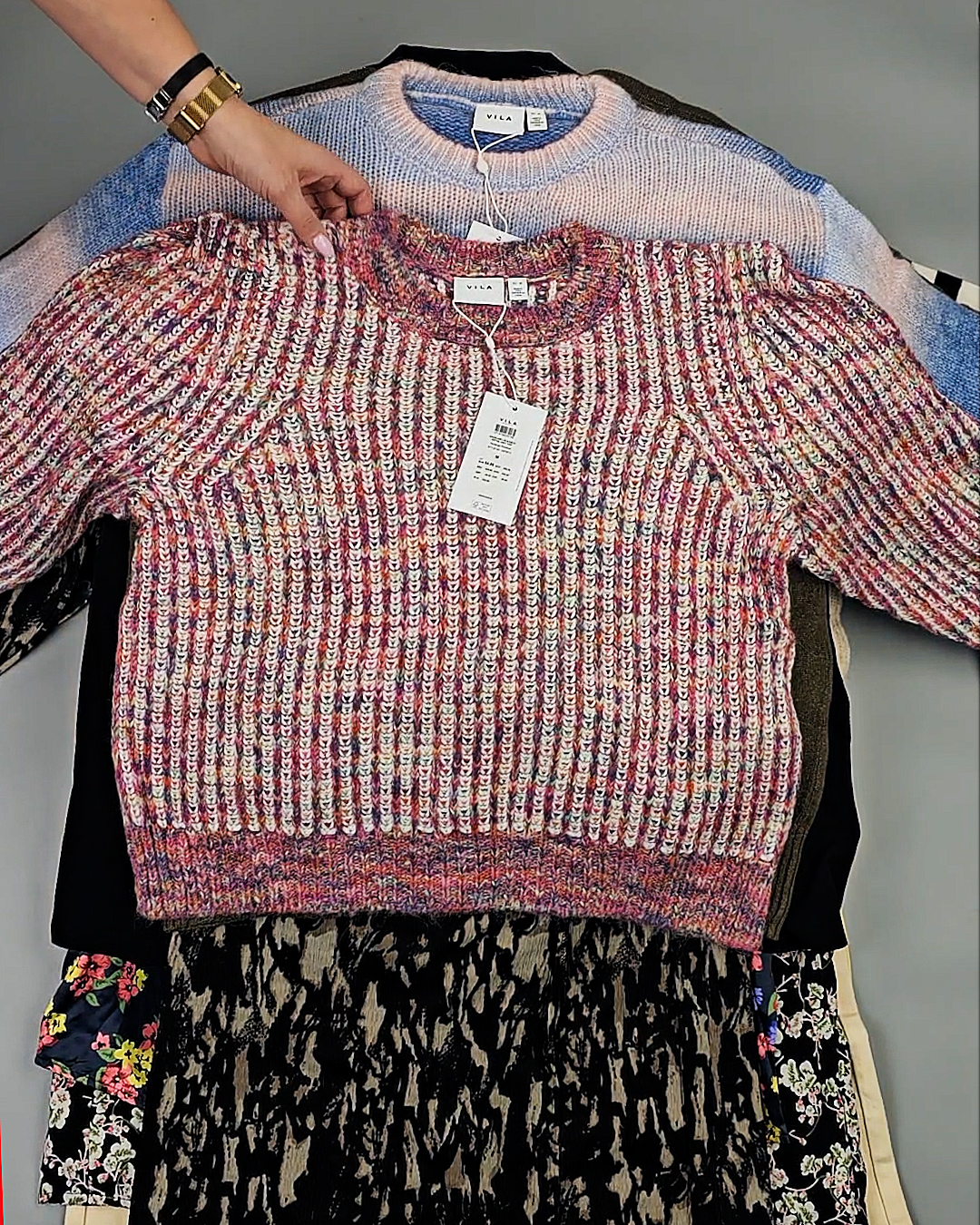 Среди нашего ассортимента всегда в наличии Сток в количестве более 450 тонн. Каждую неделю новые привозы из Европы, в том числе источником оптовых поставок бренда VILA является ДАНИЯ.